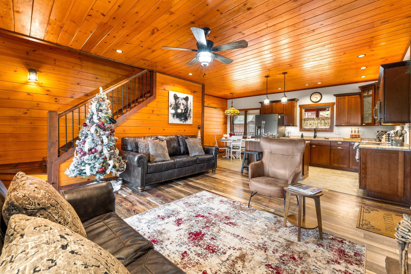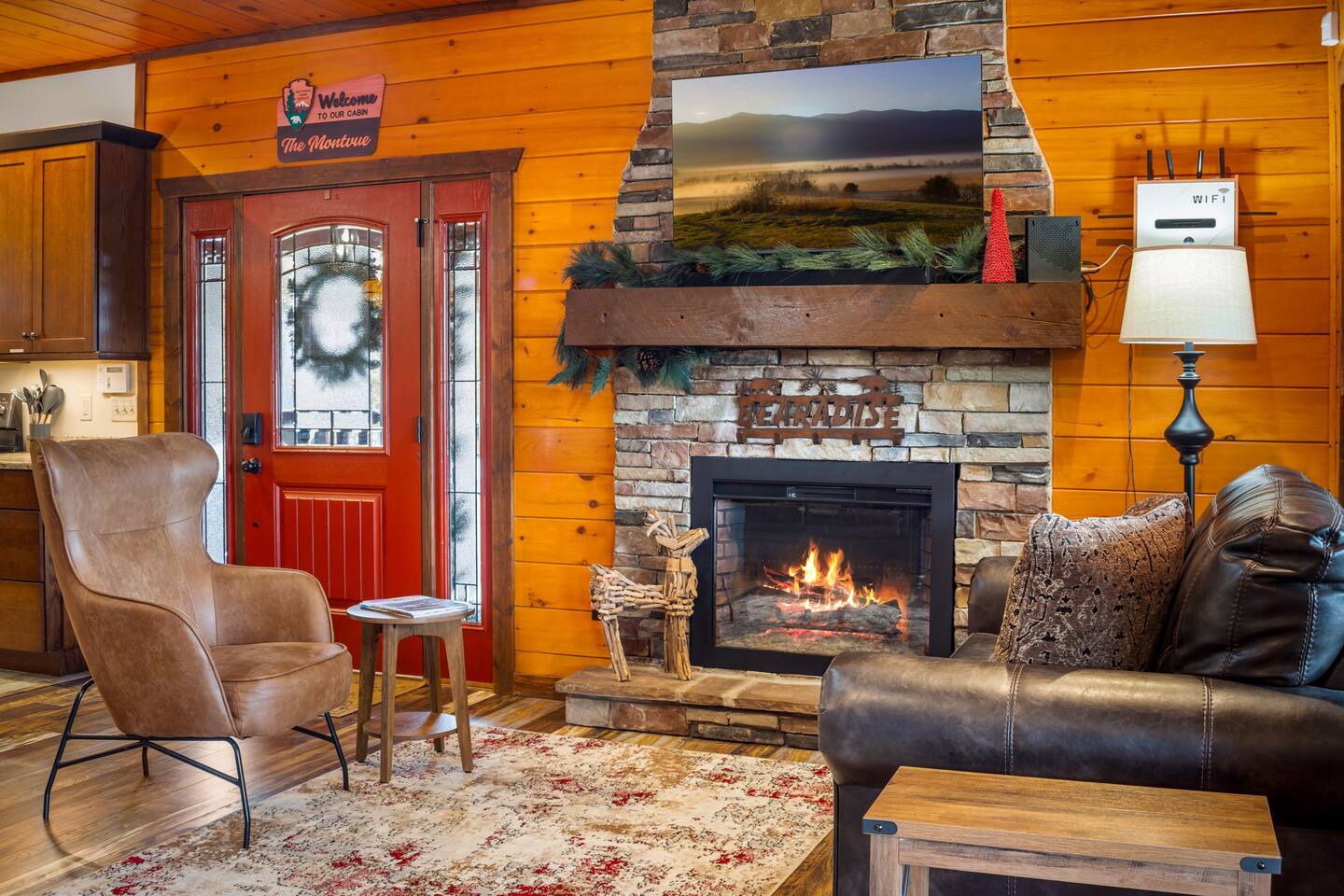 ☀️ 5.7 miles to the Parkway, attractions and restaurants nearly on every block! ☀️ 9.3 Miles to Dollywood! ☀️ 6.4 Miles to The Island at Pigeon Forge! The Montvue is in the cabin neighborhood of Grandview Resort. This is a neighborhood of cabins, so its not secluded. But its still very peaceful. The resort comes with the perks of an incredible outdoor pool (open from Memorial Day to Labor Day) and 50% off of Wahoo Zip Lines.