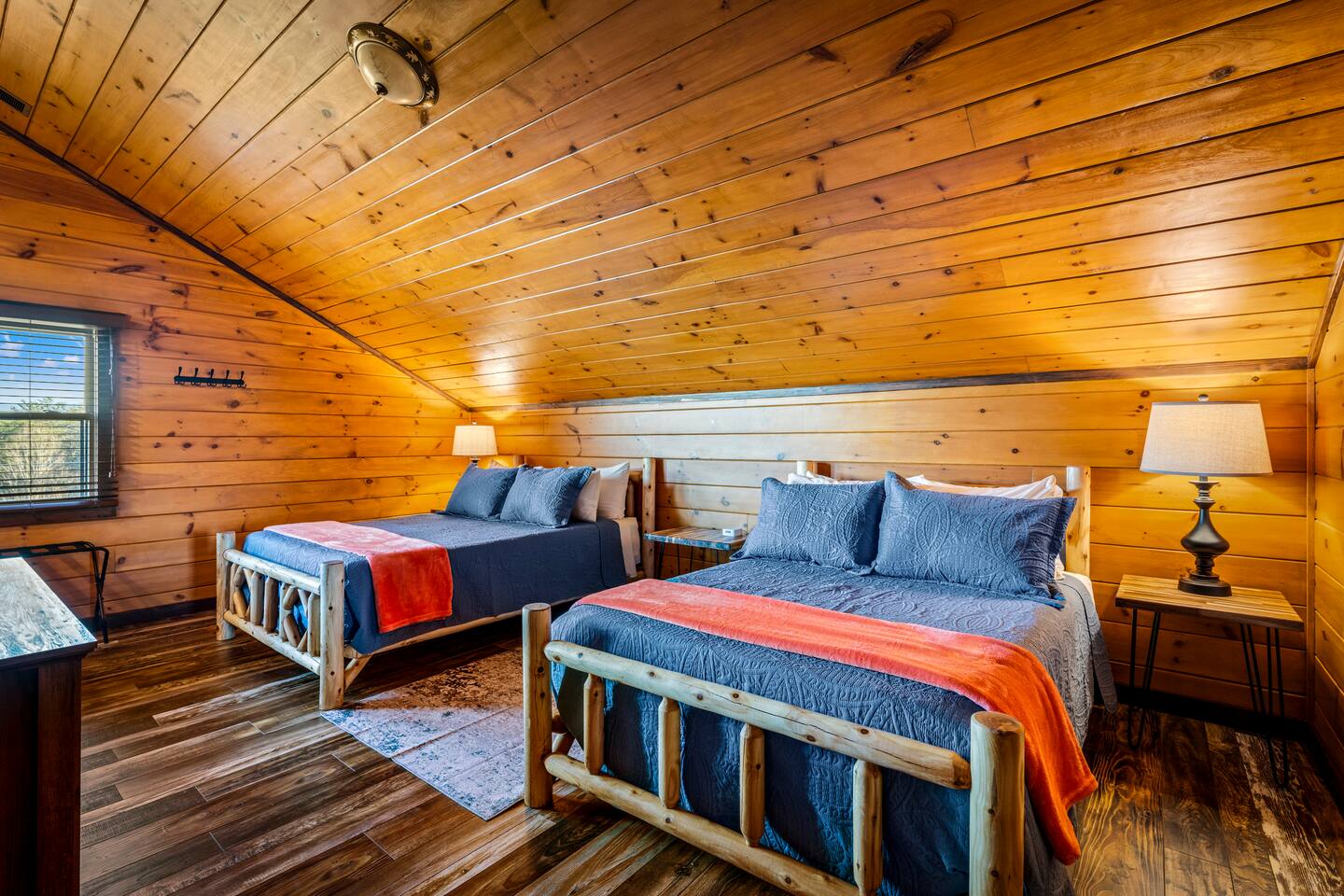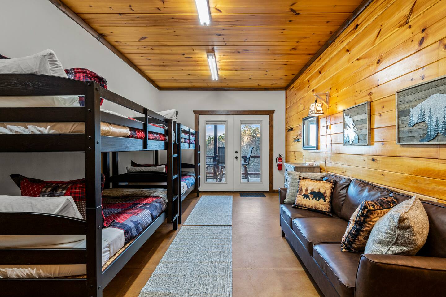 ⭑Master Bedroom:⭑ (Main floor) ✔ Queen Bed with premium plush linens and extra pillows ✔ Roku Smart TV with streaming access ✔ Walk-in closet with luggage racks, and hangers ✔ Private suite feel with an additional privacy door connecting to the bathroom ✔ Ceiling fan ⭑Second Bedroom:⭑ (Upstairs) ✔ Joint rooms: King Bed, Queen Bed, and Double Bed ✔ Divided sleeping area with wall and privacy curtains ✔ Dedicated workspace ✔ Smart TV with streaming access ✔ Walk-in closet with luggage racks, and hangers ✔ Mini-fridge ✔ Ceiling fan ✔ Portable fan ⭑Third Bedroom:⭑ ✔ Two Twin Bunk Beds (Sleeps 4) ✔ Dresser, couch, and table for card games ✔ Connected to the arcade area ✔ Portable fan ✔ Access to lower level patio and hot tub ⭑Living Room:⭑ ✔ Cozy fireplace ✔ Large Smart TV with streaming access ✔ Easy access to the wrap-around porch ✔ Card games for the family to enjoy a game night ✔ Binoculars for scenic views ⭑Kitchen and Dining Area:⭑ ✔ Fully equipped gourmet kitchen with all cooking essentials ✔ Dining table for 4 and additional seating at the kitchen island ✔ Cooking basic: salt, pepper, oil, tinfoil, sandwich bags, parchment paper ✔ Starter Essentials: dishwasher pods, cleaning spray, garbage bags ⭑Bathrooms:⭑ ✔ 2.5 bathrooms with spacious walk-in tiled showers ✔ Vanity, mirror, towels, hair dryer ✔ Starter toiletries provided ⭑Game Room:⭑ ✔ Arcade games and card table ✔ Perfect for family fun and entertainment ⭑Theater Room:⭑ ✔ 75" Smart TV for movie nights ⭑Outdoor Space:⭑ ✔ Wrap-around porches with outdoor seating, dining for 6, and corn hole game ✔ Private hot tub (drained and cleaned after every guest) with privacy curtains ✔ 20x30 pavilion with a large grill and lookout patio seating ⭑Additional Amenities:⭑ ✔ High-speed Wi-Fi, air conditioning, heating, and ceiling fans ✔ Full-size washer and dryer with starter laundry pods ✔ Parking for up to 6 vehicles ✔ Iron, ironing board ✔ Pack-n-play, and highchair (Located in Master bedroom closet) ✔ Hot tub/pool towels provided ✔ Resort Pool access (May 25th-September 7th) ⭑Safety and Security:⭑ ✔ Smoke alarm, fire extinguisher, and first aid kit ✔ Exterior RING security camera for added safety ✔ Flashlights ⭑Entertainment and Connectivity:⭑ ✔ Smart TVs, arcade games, corn hole and dedicated workspace ⭑Heating and Cooling:⭑ ✔ Air conditioning, heating, and indoor fireplace ⭑Parking and Facilities:⭑ ✔ Free parking for 6 vehicles and resort access ✔ NO steep driveways ⭑Services:⭑ ✔ Self-check-in with a smart lock Your stay at this Sevierville cabin promises unmatched comfort, endless entertainment, and a serene mountain escape. Book now and enjoy 50% off ziplining at Wahoo Ziplines all year! ⭑Conclusion⭑ Don’t miss out on this incredible getaway! Reserve your dates today and experience the best of Sevierville, Tennessee, in style. *Point of Interest:* 🏢 Tanger Outlets – ~5 mi 🌄 Dollywood –~9.2 mi 🎢 Soaky Mountain Waterpark – ~5.6 mi 🌳 Smoky Mountain Deer Farm & Exotic Petting Zoo – ~10.9 mi 🏛️ Apple Barn Cider Mill – ~4.5 mi 🎭 Country Tonite Theatre – ~5.3 mi 🛍️ The Island in Pigeon Forge – ~6.3 mi 🐾 Rainforest Adventures Discovery Zoo – ~5.2 mi 🖼️ Hillside Winery – ~5.4 mi 🎲 NASCAR SpeedPark – ~4.6 mi 🏛️ Dolly Parton Statue (Downtown Sevierville) – ~4.0 mi ⛰️ Great Smoky Mountains National Park (entrance) – ~14.2 mi 🎁 Old Mill Square (Pigeon Forge) – ~7.7 mi 🎮 The Escape Game Pigeon Forge – ~5 mi 🍗 Lil’ Black Bear BBQ – ~3 mi 🍷 Tennessee Legend Distillery – ~2 mi 🏞️ Arrowmont School of Arts & Crafts – ~3 mi 🕵️ Titanic Museum Attraction – ~7 mi 🏛️ Sevier County Courthouse Historic Downtown – ~3 mi 🌿 SkyLand Ranch (adventure park) – ~4 mi 🎡 The Island in Pigeon Forge – ~6.3 mi 🌲 Gatlinburg – ~14 mi